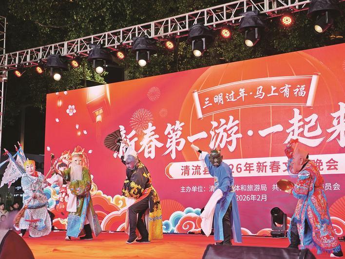 2月10日至11日,清流县连续举办“庆福年”群众文化活动、2026年青春狂欢夜大型乐队表演及新春大型文艺晚会等文艺活动。