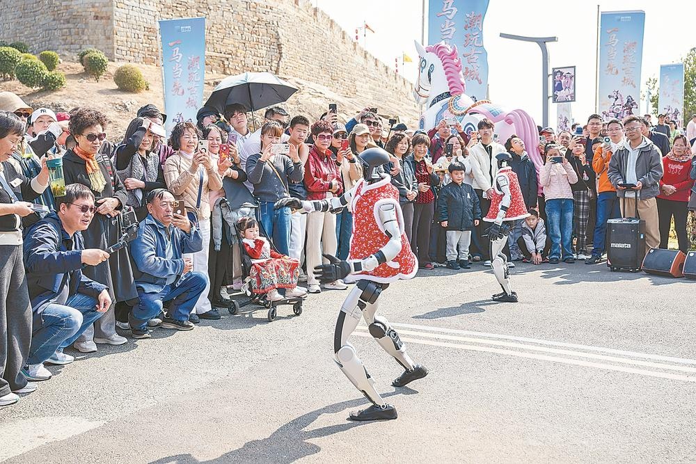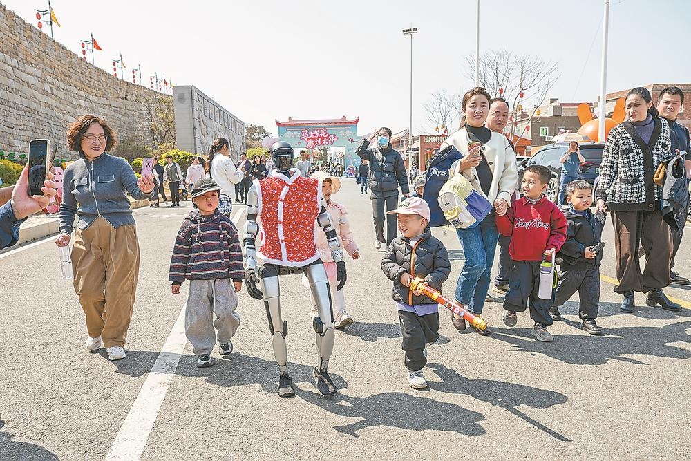 近日,春晚同款机器人亮相崇武古城,吸引不少游客打卡拍照(通讯员 邓文祥 记者 庄钊滢 摄)