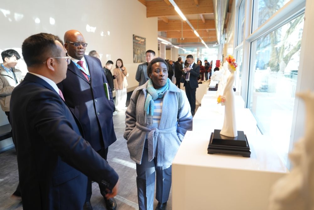 2月24日,在瑞士日内瓦万国宫,嘉宾在2026“中国白·德化瓷”国际巡展上参观展品(新华社发 赵传奇 摄)