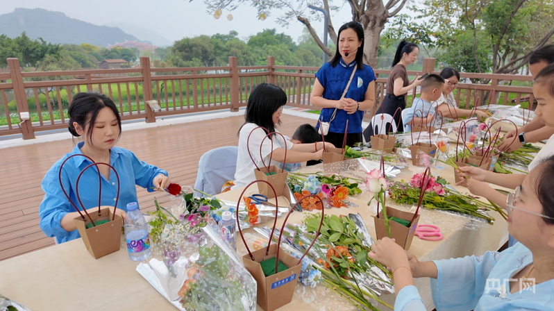 在古窑工坊旁红砖连廊景观平台,“巧艺传情”非遗手工制作体验热闹开场。现场以插花艺术为主题,市民游客沉浸式感受传统花艺魅力,在选枝、修剪、构图中体悟自然之美与人文巧思,休闲茶歇区域温馨雅致,让大家在动手之余慢享春日闲适,在指尖传承中感受非遗温度。