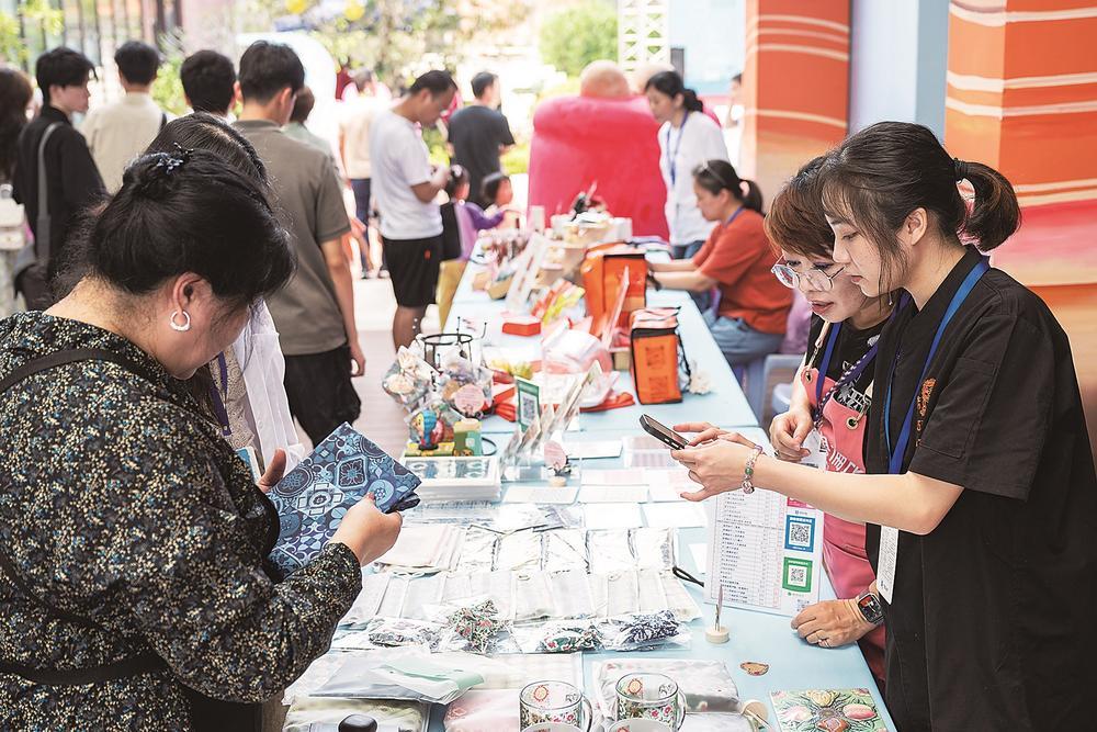 第十一届“匠心意蕴”闽台文创周活动现场,市民在闽台文创市集上选购两岸文创产品和特色美食。(记者 王毅 摄)