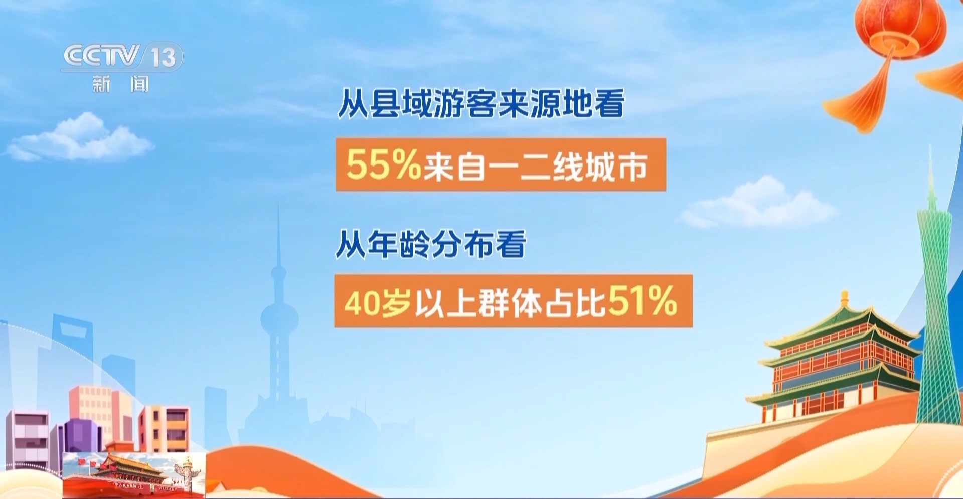 进一步分析县域游客来源地发现,55%的游客来自一、二线城市,超过一半是40岁以上群体。