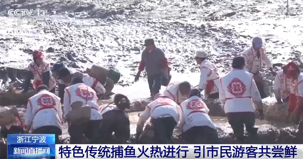 1月10日,在浙江宁波,人们用当地特色的“抲冬塘”捕鱼法作业,还请大厨当场烹饪冬季的第一网渔获,供市民游客品尝,在丰收的喜悦中寄托“年年有余”的美好期许。
