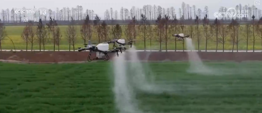 在铜陵市普济圩农场,近3万亩小麦正值返青拔节的关键期,确保每一亩地都得到精准呵护是夏粮丰收的保障。农场上空,搭载北斗导航系统的植保无人机正按照预设的厘米级精度航线自主飞行,平稳地进行叶面肥喷施作业。