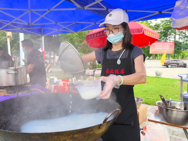 广场另一侧,濑粉大赛正如火如荼地进行着,成为全场最热闹的焦点。来自稔村镇各村(居)委的16支参赛队伍同台竞技,展开了一场技艺与速度的较量。