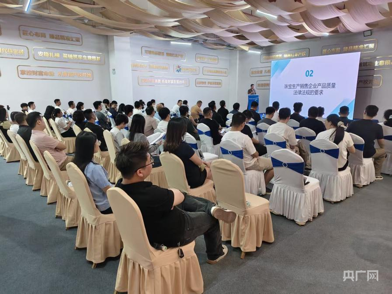 在会议的第一个环节,广东省汕尾市质量计量监督检测所检测室主任杨浩作了珠宝产业链质量提升专题报告。报告从珠宝生产销售企业产品质量法规要求、珠宝生产企业不合规案例分析、珠宝生产销售企业合规建议等方面,向与会人员做了深入浅出的案例解读、珠宝产品及销售法律法规的分析。