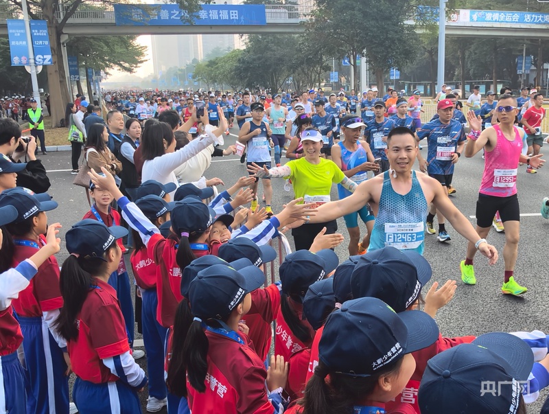 央广网深圳12月10日消息(记者官文清 通讯员宋卓远)12月7日,2025深圳马拉松鸣枪开跑。在马拉松沿线的展演点,深圳少年警营100名少警化身“能量加油站”,用嘹亮歌声和激昂乐曲为途经的参赛选手加油打气。旋律伴随着清脆童声在赛道飘扬,沿途的跑手听到歌声后,纷纷和少警们挥手致意、热情互动。稚嫩却有力的歌声像一股暖流,为参赛选手注入澎湃动力。