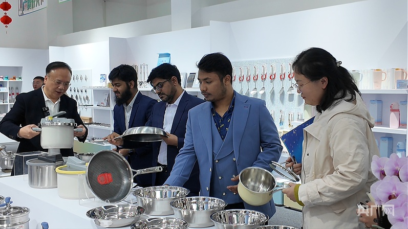 沿着展销区一路走访,记者首先来到不锈钢制品专区,揭阳不锈钢制品协会会长郑立文正忙着向游客介绍特色文创产品。“我们协会组织了10家企业参加这次活动,特意把英歌舞的IP形象和我们揭阳的杯子结合在一起,做成了文创产品。”郑立文告诉记者,将传统产业与揭阳本土文化深度融合,打造系列文创产品,既能向广大游客和消费者传播揭阳文化,也是打响揭阳不锈钢品牌的一个好途径。