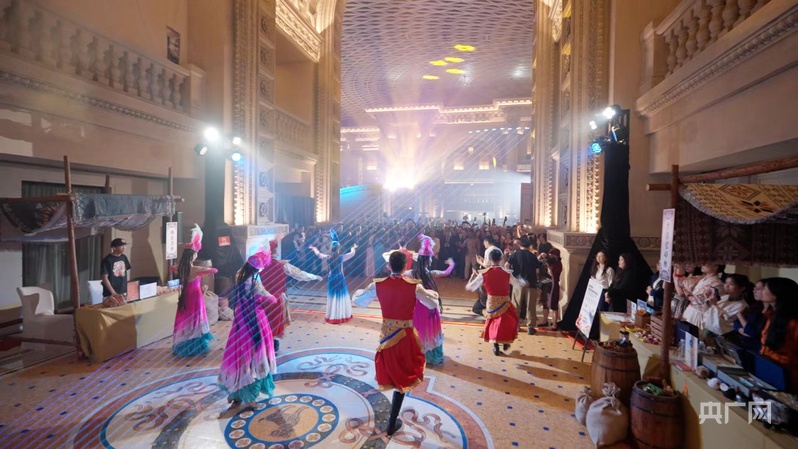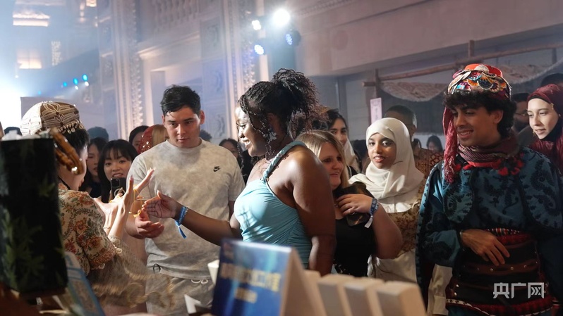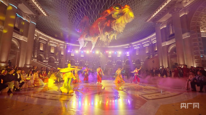 夜幕降临,罗浮宫星座广场穹顶星光次第绽放,身着汉服、香云纱、欧式礼服、东南亚特色服饰的嘉宾陆续入场,多元风情交织相融,勾勒出文明共生的唯美图景。整场活动以四大篇章层层递进,带领观众跨越山海,重温丝路传奇。第一幕“启航”复刻威尼斯风情,优雅社交舞演绎地中海浪漫;第二幕“西域市集”烟火氤氲,特色互动市集尽显丝路繁华;第三幕“海市蜃楼”惊艳登场,岭南鳌鱼舞与敦煌飞天舞蹈同台演绎,地域文化与丝路美学碰撞共生;第四幕“南海盛景”以欢乐斗舞拉满氛围,各国嘉宾同台互动、欢聚同乐。新疆伽师舞团倾情助阵,丰富表演形式,让中外嘉宾沉浸式感受东西方文化交融的独特韵味。