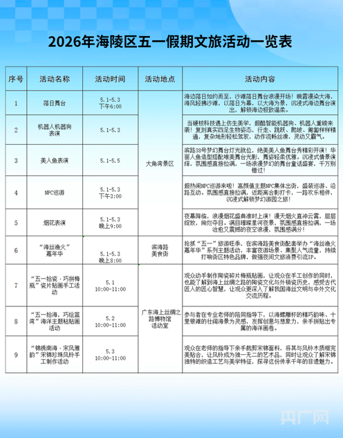 据了解,本次“五一”假期推出的17项文旅活动,内容丰富、覆盖面广,兼顾文化性、趣味性与观赏性,全方位满足家庭出游、年轻休闲、文化研学等多元化需求。下一步,海陵岛将持续完善旅游配套服务,优化游玩体验,以浓厚的节日氛围、优质的文旅产品,擦亮滨海旅游金字招牌,全力拉动假日文旅消费增长,推动海岛文旅产业高质量发展。