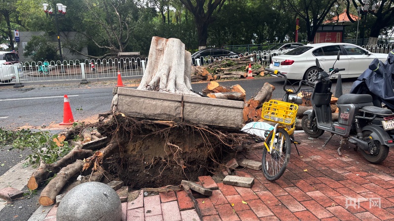 海印公园附近,有树木被连根拔起(央广网发 实习记者彭佳妮 摄)