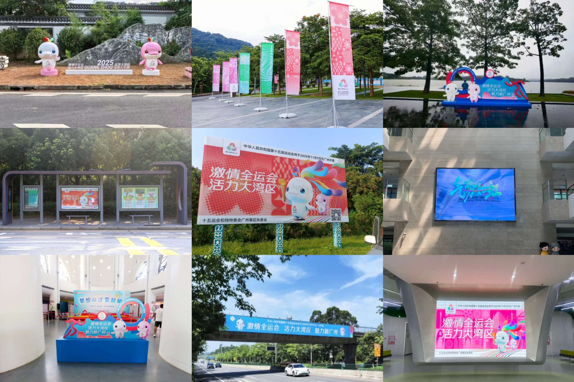 在荔城、新塘、派潭等公交站台电子站牌上,设置宣传海报,持续轮播十五运宣传画面,利用市民日常出行轨迹进行有效宣传。