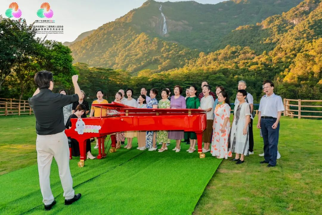 活动尾声,一曲《我和我的祖国》的钢琴声于山谷间悠然响起,引发了全场动情合唱。悠扬旋律、落日云霞与漫山绿意交织共融,绘就了一幅“人、体育与自然和谐共生”的动人画卷。