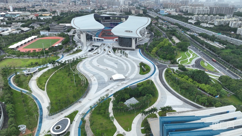 曾经仅0.6米宽的奥体南路、大观路人行道,如今已拓展为3米宽的舒适慢行空间;健身运动区、智慧跑道错落布局,五环主题的服务驿站与滨水景观交相辉映。这些改造既为赛时营造了优美环境,更构建了一个持续服务市民健身需求的“城馆一体”空间。