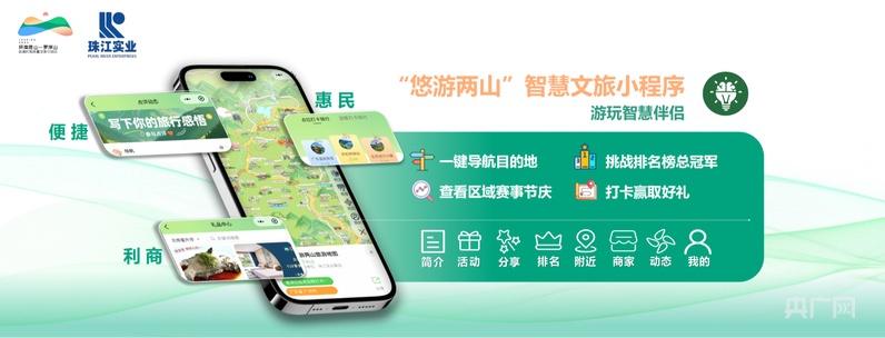 活动中,珠江实业集团正式对外发布“悠游两山”文旅IP,以“智慧引导+互动体验+商业联动”为核心理念,系统构建“两山行迹”打卡集、“悠游两山”智慧文旅小程序、“悠旅联盟合伙人”计划三大板块,助力引领区打造长期运营数字底座,构建线上线下深度融合、游客与商家互利共赢的文旅新范式。
