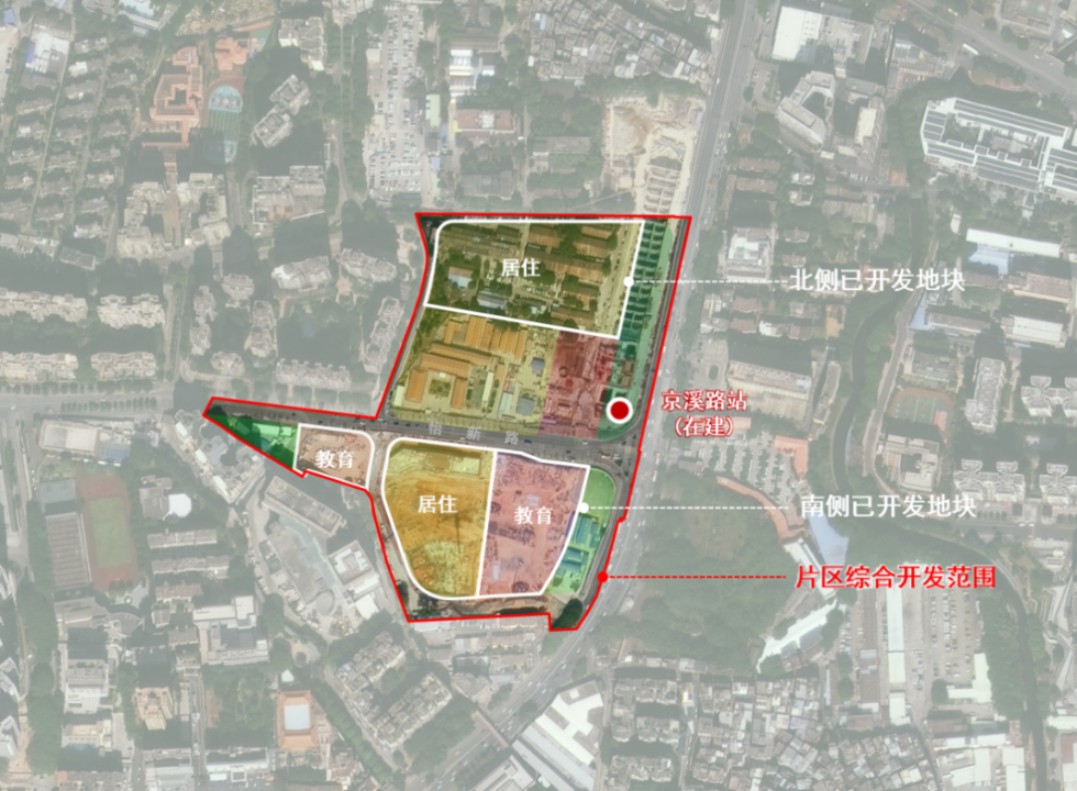 近日,广州东至花都天贵城际京溪路站场站综合体及周边片区开发迎来重要进展,怡新路南侧居住与教育功能地块已完成主体工程建设,北侧综合体居住地块也正式启动建设,基础工程已全面展开。整个片区综合开发稳步推进,城市空间形态初具雏形,昔日零散的土地正加速转变为充满活力的居住社区型TOD综合开发新门户。