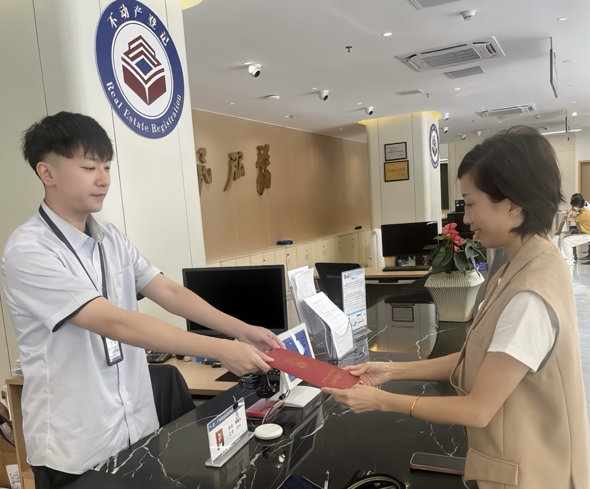 近日,广州市白云区不动产登记中心大厅里,正佳帽峰湾国际文化旅游度假区项目工作人员顺利领取到不动产权证书。