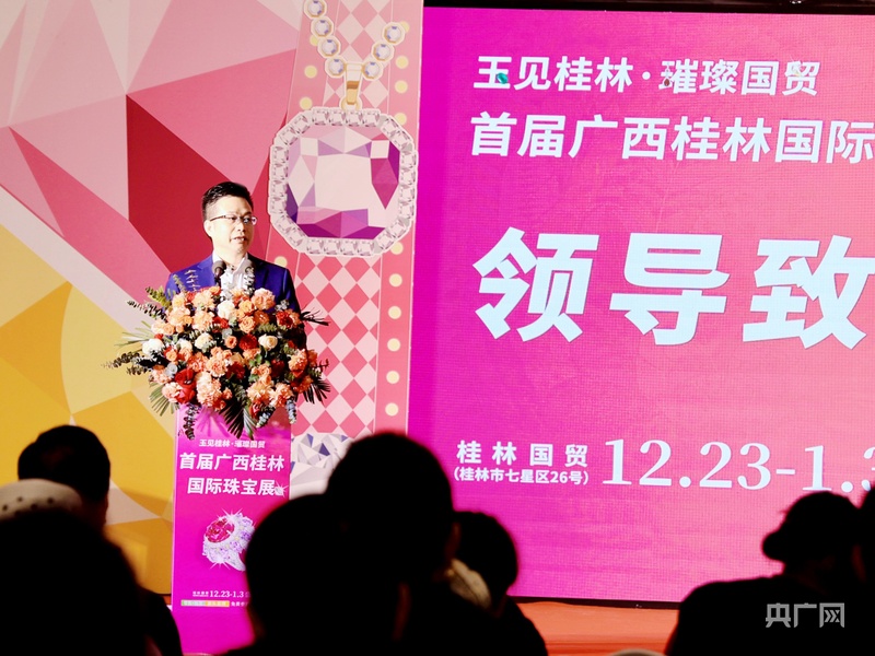 央广网桂林12月25日消息(记者徐钡儿)12月23日,由广东省玉器商会主办的首届广西桂林国际珠宝展,在桂林市七星区国贸天地正式启幕。桂林市商务局副局长韦向京、桂林市七星区副区长伍晖琳、桂林市七星区委宣传部副部长陈天明、广东省玉器商会会长覃鹏芳、桂林佰安德商业管理有限责任公司董事长王建新、深圳市设计师协会会长杜半等100多位嘉宾出席开幕式。