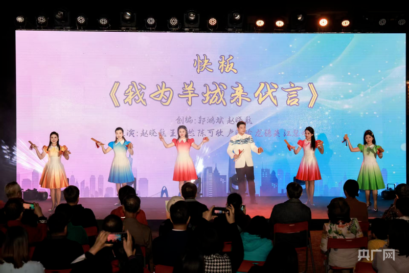 快板《我为羊城来代言》 创编:郭鸿斌 赵晓航 表演:赵晓航 王浩然 卢晓瑜 龙穗英 江慧妍(央广网发 主办方供图)