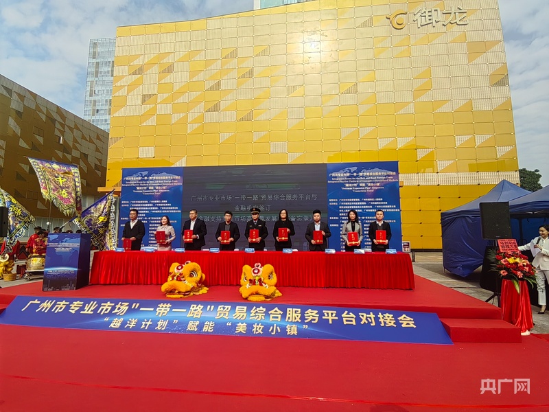 央广网广州1月28日消息(记者罗世伟)1月27日,广州市专业市场“一带一路”贸易综合服务平台对接会暨“越洋计划”赋能“美妆小镇”活动开幕式在越秀区御龙外贸服装城举行。活动由广州市市场监督管理局、越秀区人民政府指导,旨在推动专业市场转型升级高质量发展,为企业提供全方位跨境贸易支持。