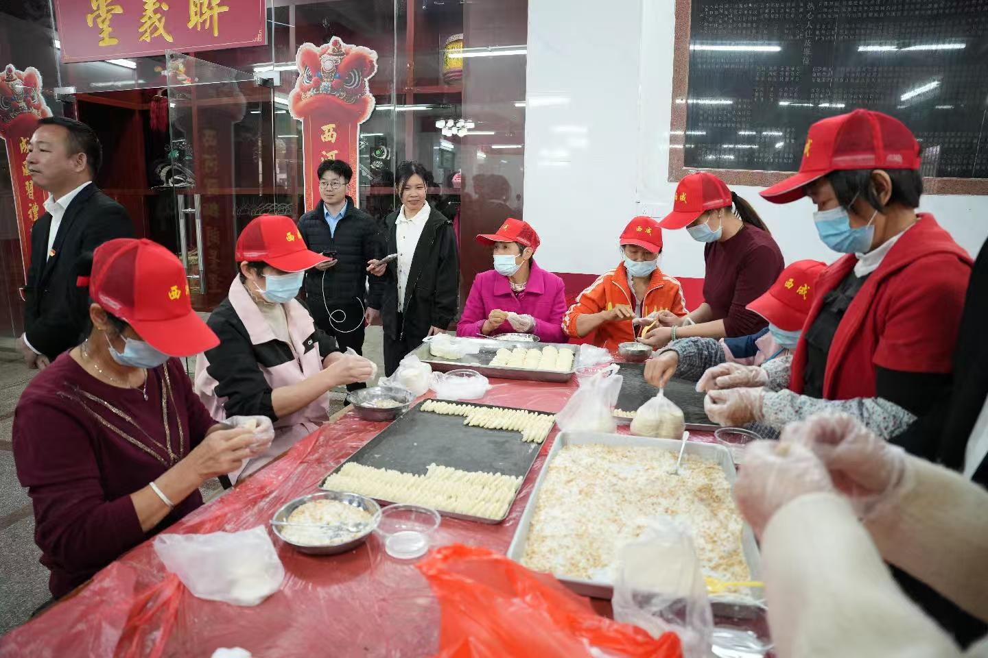 活动还设置了富有年味和传统文化特色的互动体验环节,与会嘉宾与村民一起品尝年糕、煎堆、油角等传统春节美食。现场还举办“墨香添福”挥春活动,吸引了众多村民参与。