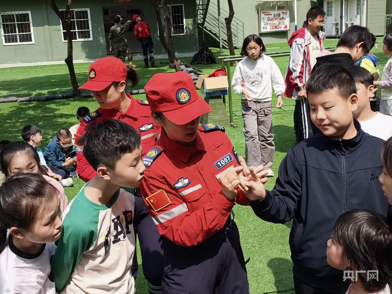 “剪刀、石头、布——记住这个口诀,就能快速找到腹部冲击的位置!”在“安全卫士”教学环节,急救教员带来的海姆立克急救法与创伤包扎课程,同样吸引了孩子们的注意力。这种将生命安全技能与国防意识相结合的课程设计,体现了新时代国防教育的综合性。