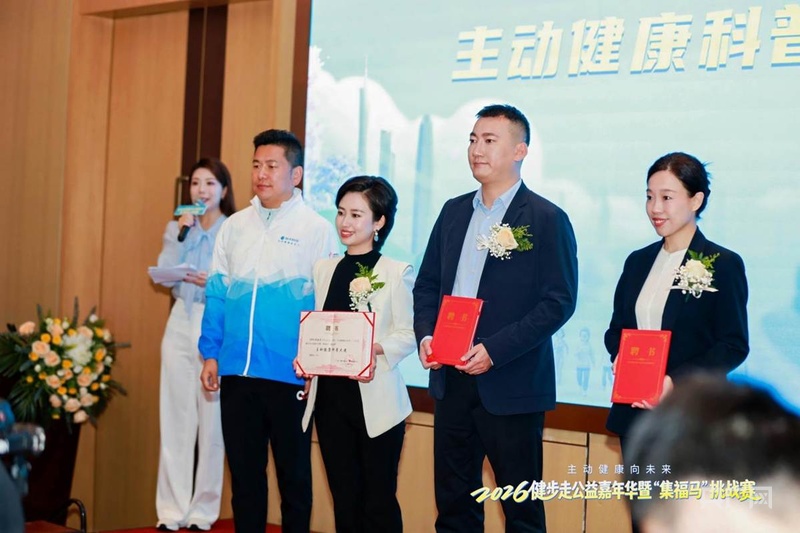 活动现场,南方医科大学珠江医院内分泌代谢科主任医师孙嘉、中山大学附属第六医院关节外科运动医学科副主任医师王涛、广东广播电视台《活出健康》节目主持人周敏莉获聘“主动健康科普大使”。同时,来自各界的59位代表获聘“主动健康推广大使”,他们将肩负起传播健康理念、带动更多人参与健步走活动的使命。