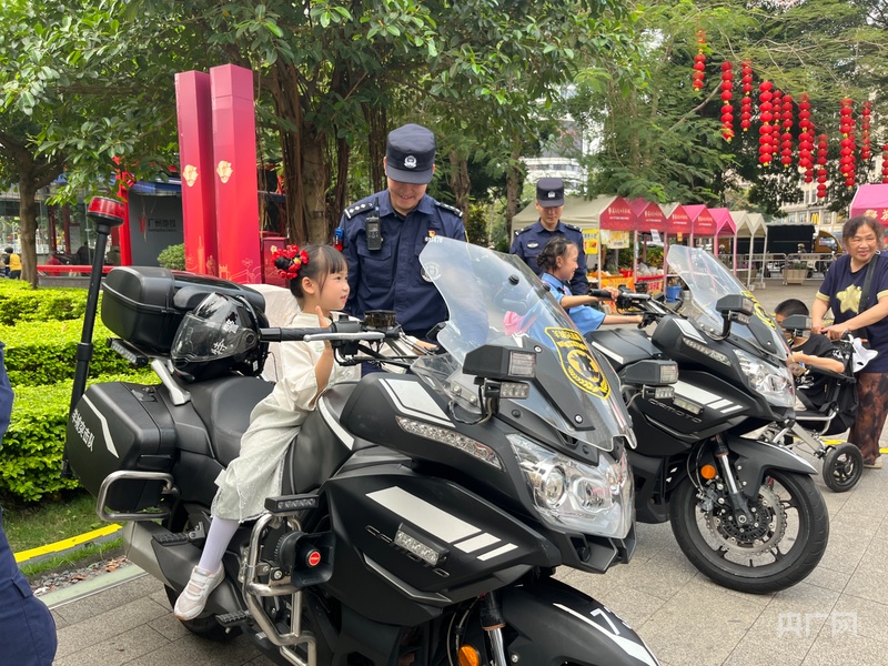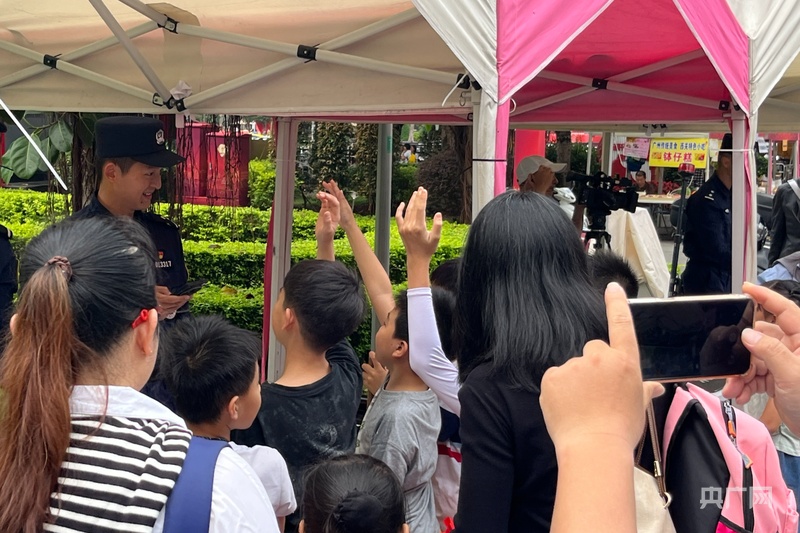 现场陈列了“暴龙”特种装甲车、“春风650”警用摩托车、“黑鹰”破拆工具、腰封八件套等羊城突击队常用警械装备,特警队员们耐心讲解这些装备的用途、性能参数及实际应用场景。在队员的耐心指导下,市民与中小学生近距离观察,沉浸式感受警用科技的先进实力。不少学生争先与装备合影,心里种下了向往正义、守护平安的小小种子。