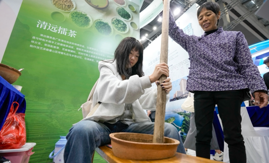 哈尔滨工业大学(深圳)商业管理专业研一学生、来自苏丹的阿布杜(中文名)在此逗留许久,他主动向工作人员了解清远产业机遇,并对擂茶和刺绣表现出浓厚兴趣。“我了解了清远鸡、桂花鱼、丝苗米等特色农产品,首次尝试擂茶,觉得颜色和做法很新奇。”他表示,下月学校将组织活动,计划前往清远,更深入地了解清远。深圳大学学生黄嘉莹则点赞清远山清水秀的环境和精致的刺绣,“清远的产业发展氛围很好,很有吸引力。”