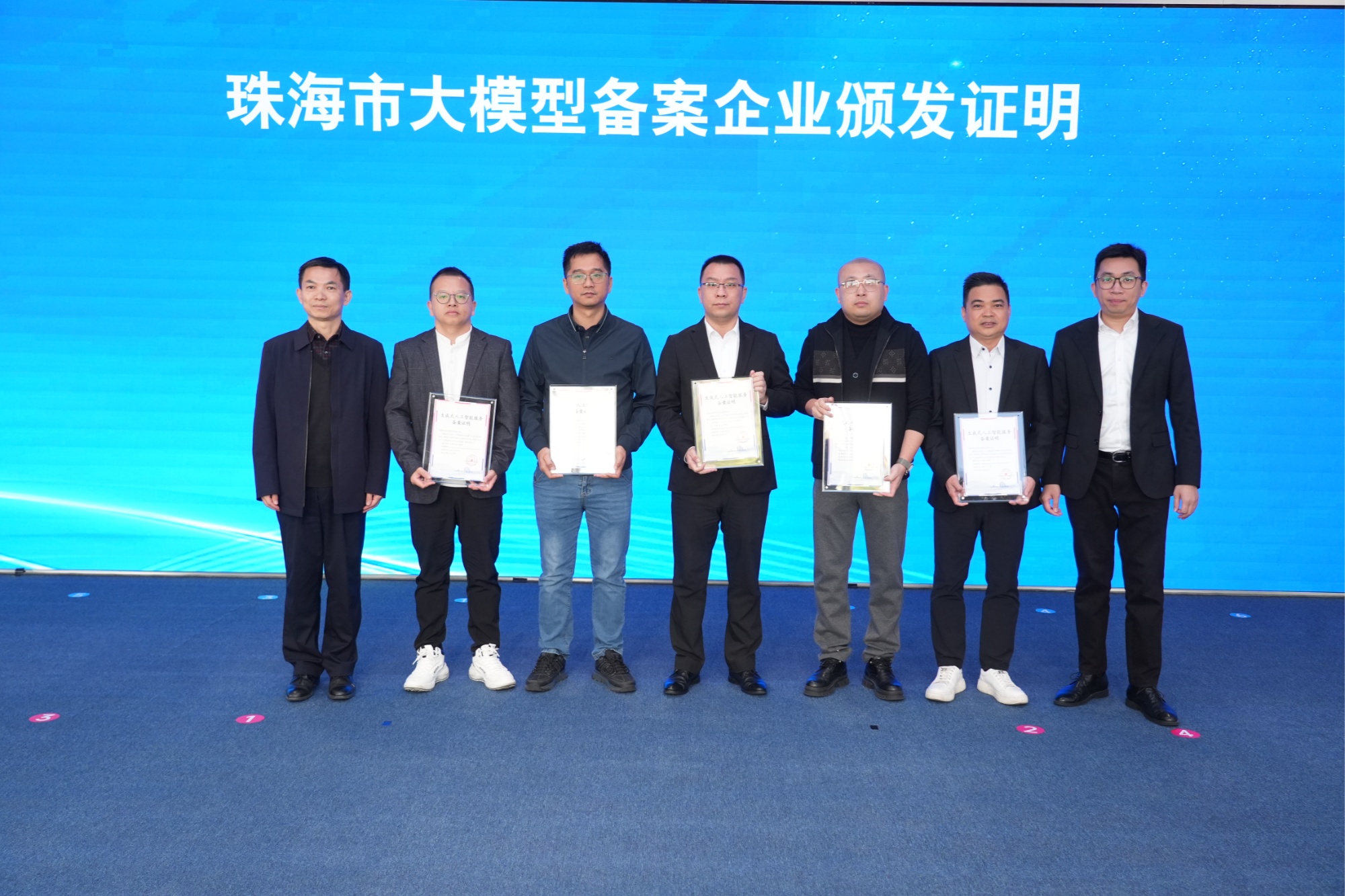 当天活动现场还为最新一批大模型备案企业颁发证书,7家企业获颁“生成式人工智能服务备案证明”,分别是:珠海无界方舟智能技术有限公司的方舟大模型、珠海读书郎软件科技有限公司的读书郎梦想大模型、广东东华发思特软件有限公司的神农新论大模型、珠海市东信云科技有限公司的营赛生图大模型、珠海企数星图科技有限公司的企数星图大模型、深译信息科技(珠海)有限公司的深译大模型、深绎未来科技(广东横琴)有限公司的深绎未来葡语大模型。