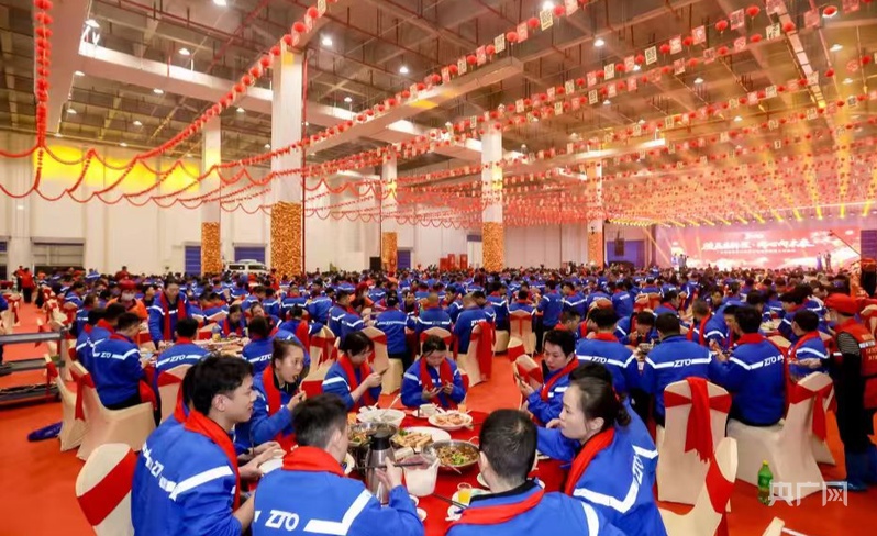 央广网广州2月12日消息(记者徐钡儿)2月10日晚,农历腊月廿三,北方小年。在广州“万人年夜饭”活动现场,来自中通等多家快递企业的优秀小哥代表欢聚一堂,共同参加“骏马启新程 同心向未来”主题年夜饭活动。平日穿梭于大街小巷、彼此“熟悉的陌生人”,在这一晚放下奔忙,围坐桌边,共享一份热气腾腾的行业温情。