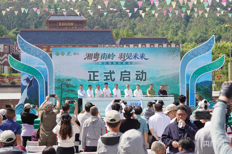 央广网韶关4月26日消息(记者官文清)4月25日,第五届南岭观鸟季活动在广东韶关乳源瑶族自治县开幕。本次活动以“湘粤南岭 羽见未来”为主题,创新构建“1+5+N”活动体系,以1场全国观鸟邀请赛为核心,配套5大主题活动与N项沉浸式生态体验,全方位展示南岭山脉生物多样性保护成果与跨区域协同保护成效。