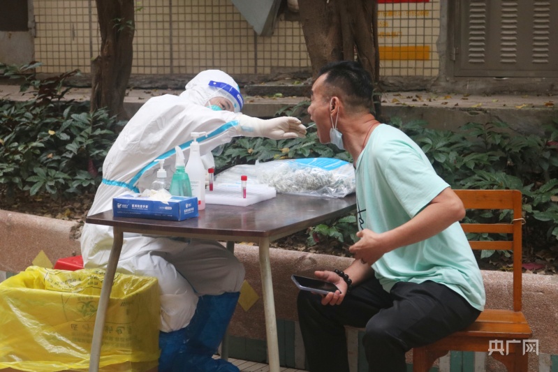 央广网记者在现场观察到,在工作人员的指引下,居民们都井然有序地排队,做完核酸后,领取免费蔬菜包后,立即返回居所。