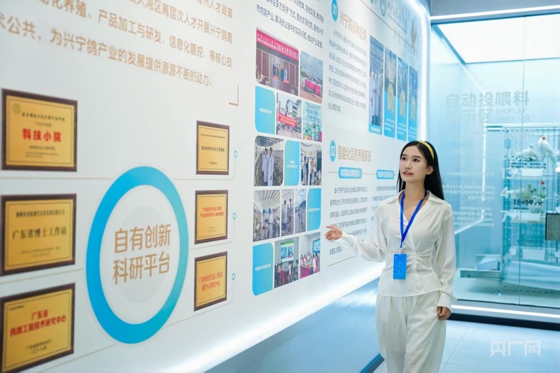 数字化赋能,则让产业管理更高效。产业园大数据平台整合5G、物联网技术,养殖环境数据、生产流程信息实时上传,管理人员通过手机即可远程监控。“从种鸽育种到产品溯源,数字技术贯穿全链条,为标准化生产提供了有力支撑。”兴宁推介员杨巧兰说。