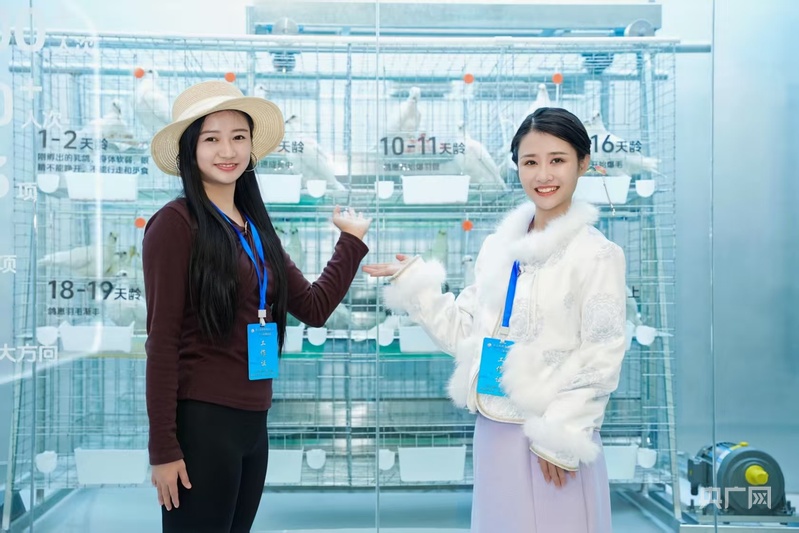 达人在自动投喂料展示区“打卡”(央广网记者 张顺鹏 摄)