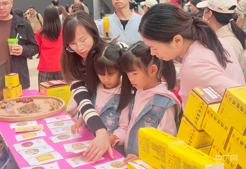 市民朋友在体验“中药翻翻看”互动游戏(央广网发 主办方供图)