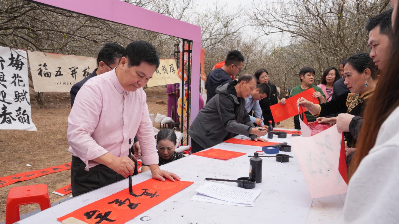 活动现场,来自各地的游客漫步梅林间,赏花观景,感受梅林的自然韵味与人文活动的多彩魅力。