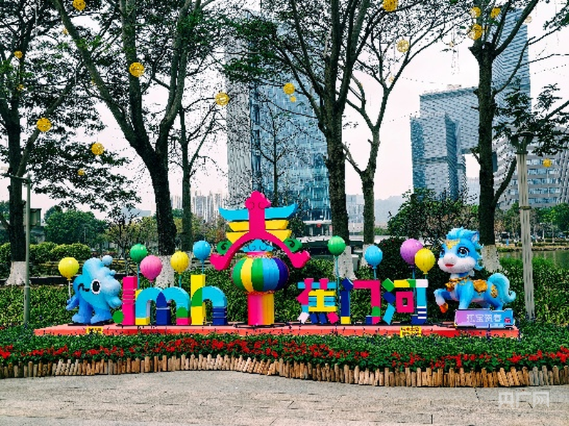 在被誉为南沙“城市客厅”的蕉门河公园,新春园林布置以灵动的水岸线为轴,通过现代艺术装置与时花的巧妙搭配,营造出欢快、时尚的节日气息。