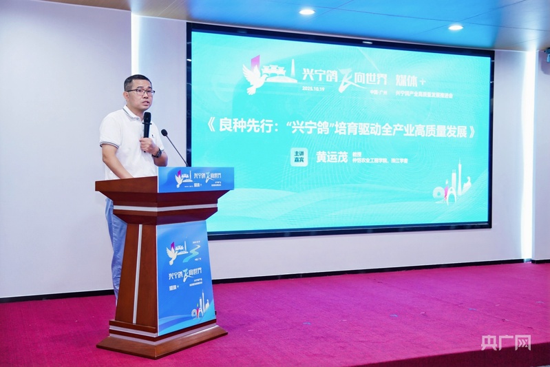 当优质种业成为现代农业的“芯片”,肉鸽产业的竞争,也愈发集中在育种创新的高地上。在推进会现场,仲恺农业工程学院教授黄运茂以《良种先行:“兴宁鸽”培育驱动全产业高质量发展》为题发表主题演讲。