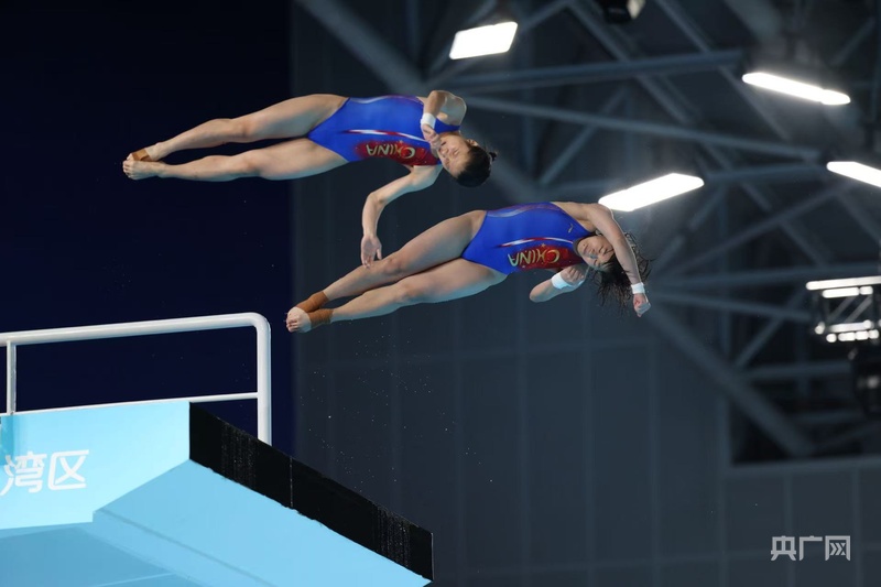 全红婵、王伟莹比赛现场(央广网发 陈菇摄)