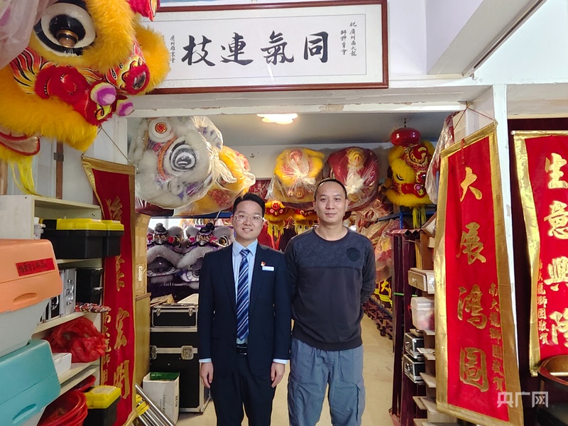 南大龙狮位于荔湾区的库房里,百余头色彩鲜艳的醒狮被放置在货架上。这是一家致力于传播广东醒狮文化的小微企业,有30名员工,遇到忙碌的时候,也会临时聘请一些员工。春节巡游、开业庆典、非遗进校园、海外商演……南大龙狮全年订单排得满满当当。但“热闹背后有烦恼”——醒狮装备单价高、更新快,客户账期又长,郑骏钊往往要先垫资再回款。