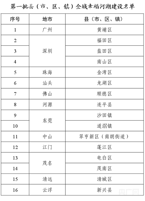 第一批县(市、区、镇)全域幸福河湖建设名单(央广网发 广东省水利厅供图)