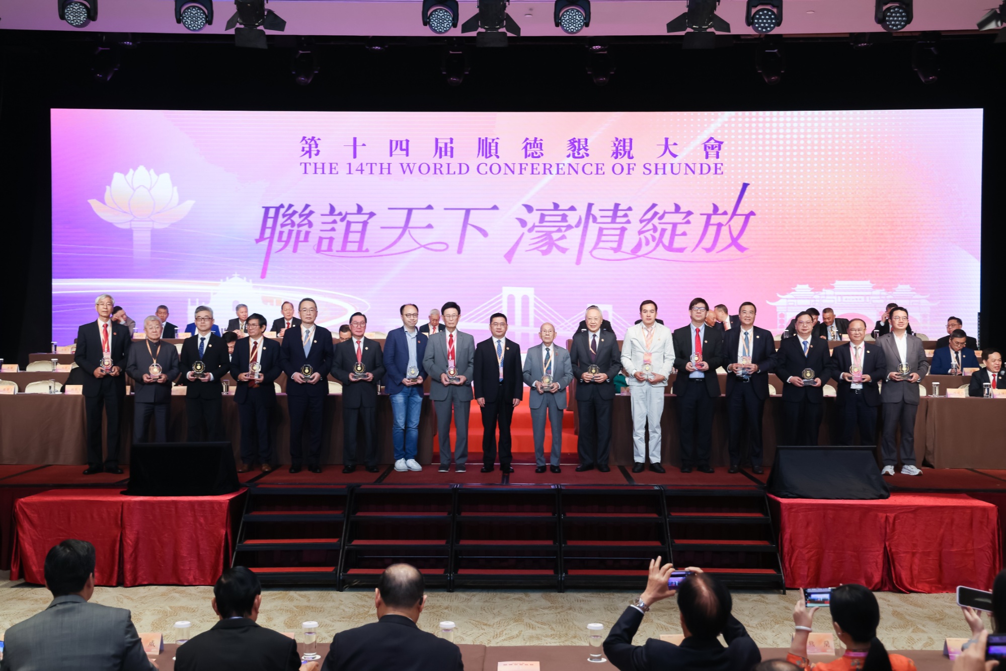 大会最动人心弦的环节,当属新一批“顺德邑贤致敬名录”公布仪式。杜半之、吕志华、邱庭彪、周贤忠、冼永就、陈致平、陈钦富、麦家乐、梁庆庭、梁锦棠、张冠荣、甄荣辉、廖汉辉、郑志恒、潘乐陶、龙炳颐等16位为顺德发展作出卓越贡献的港澳台同胞、海外乡亲获此殊荣。