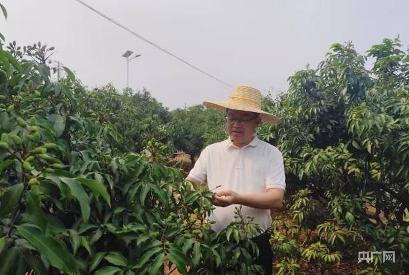 湛江市遂溪县乌塘镇党委书记洪文泽在田间查看遂溪乌塘仙品荔长势(央广网发 活动主办方供图)