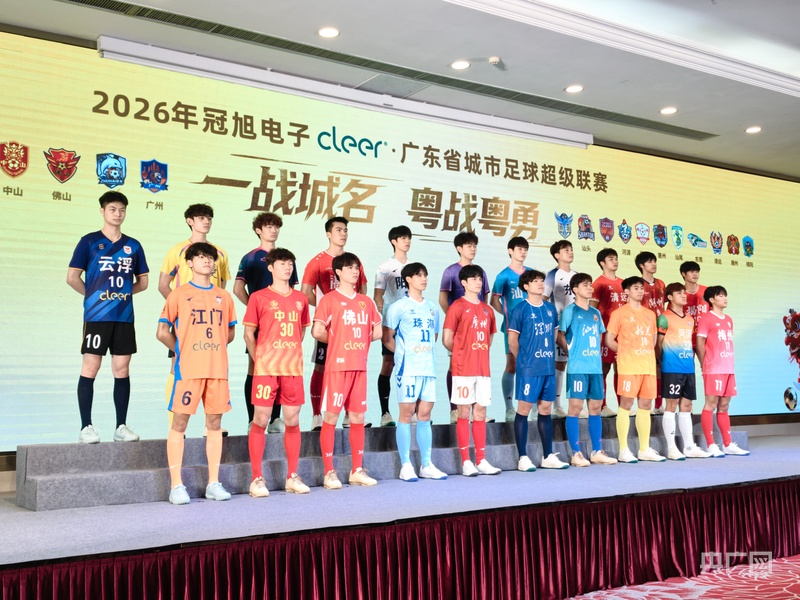 在吹风会现场,21个地市代表队的队徽和比赛服逐一展示。各具地域特色的设计,充分展现出广东百花齐放的足球文化与深厚绵长的足球底蕴。组委会特邀容志行、池明华、彭伟国、郜林四代广东足球名宿,现场为2026粤超打Call。