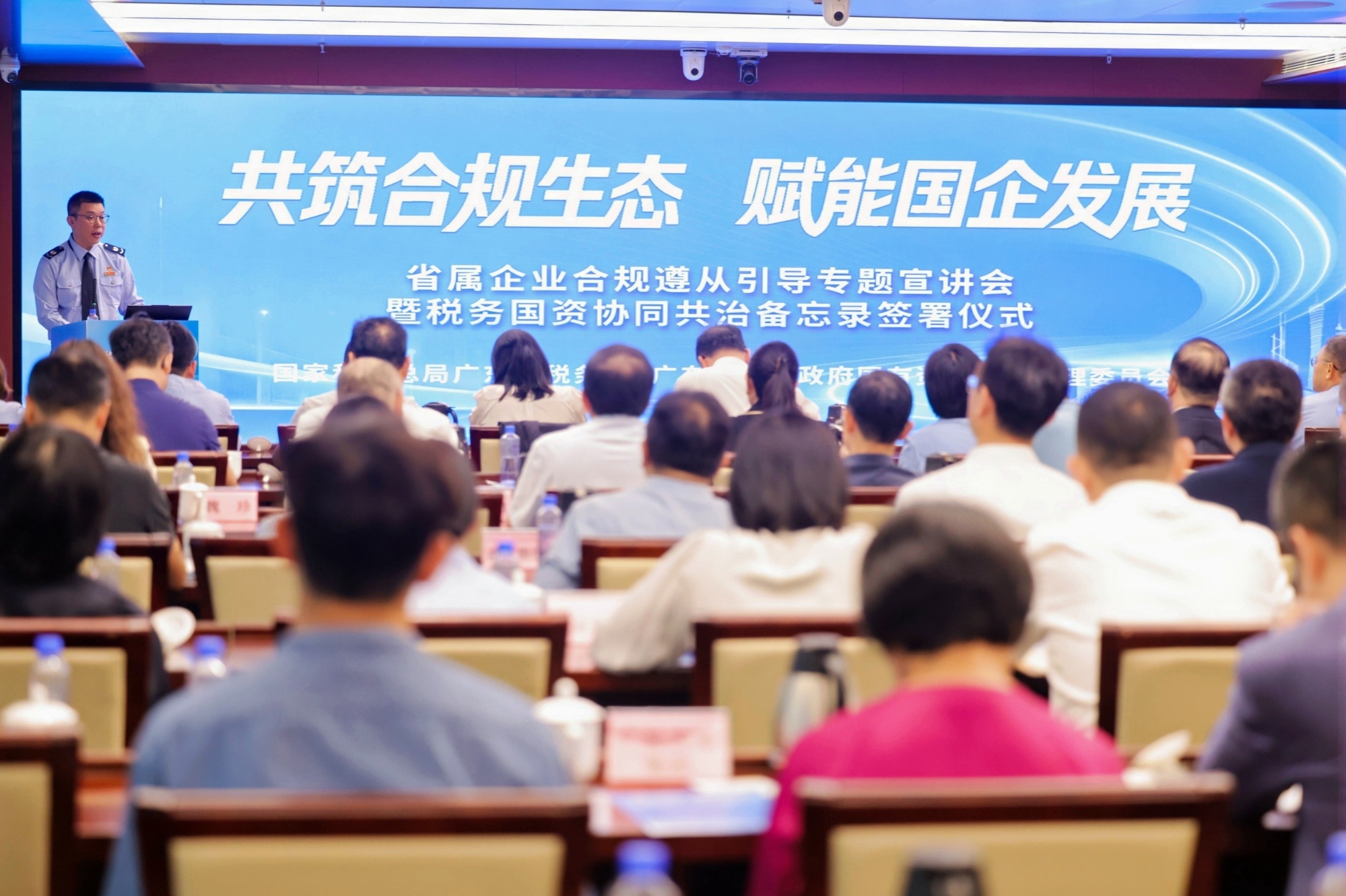 为共同支持和引导国有企业集团加强合规管理,推动高质量发展,4月16日,国家税务总局广东省税务局与广东省人民政府国有资产监督管理委员会联合举办“共筑合规生态 赋能国企发展”政策宣讲会,向18户广东省属国有大企业集团开展合规遵从专题引导服务,并正式签署促进省属企业合规遵从协同共治备忘录,构建跨部门合作治理长效机制。此次活动紧扣第35个全国税收宣传月“税收·法治·公平”主题,以协同共治筑牢合规底线,以精准服务赋能国企发展。