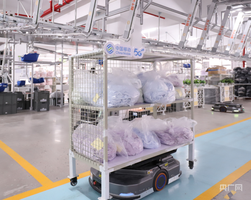智能机器人在生产车间运送布料(央广网发 主办方供图)