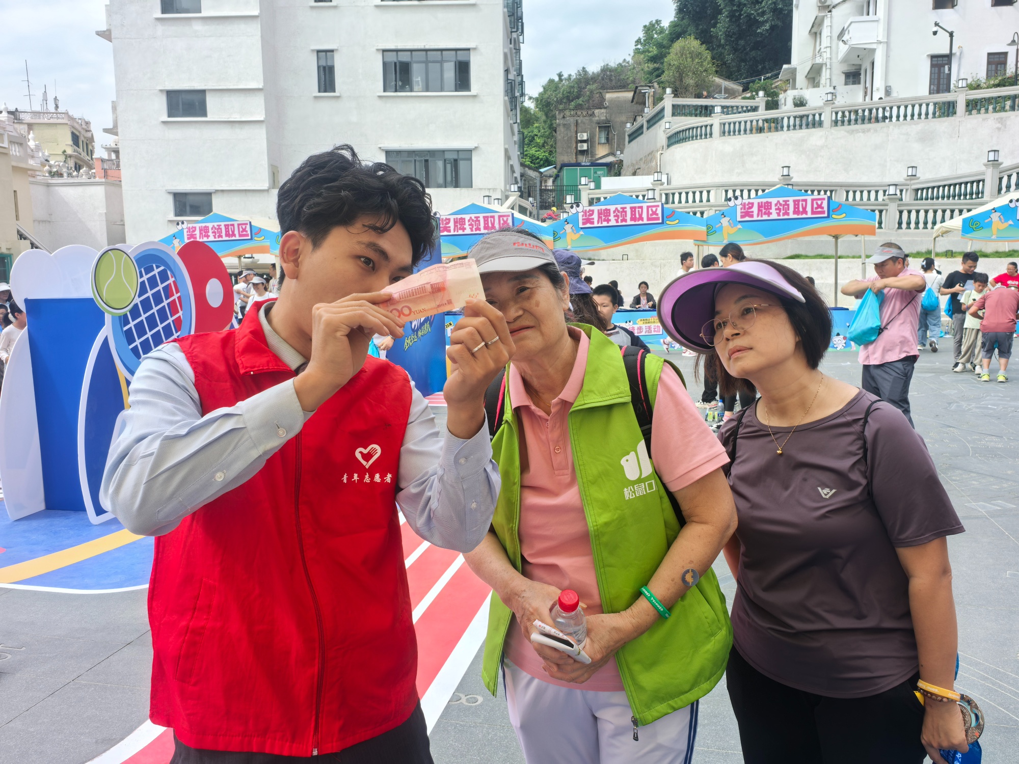 在“体育燃动十五运,文旅解码香山行”——“运动中山”徒步活动现场,农行中山分行志愿者们变身“金融知识普及员”,为沿途市民带来了一场实用的金融知识普及