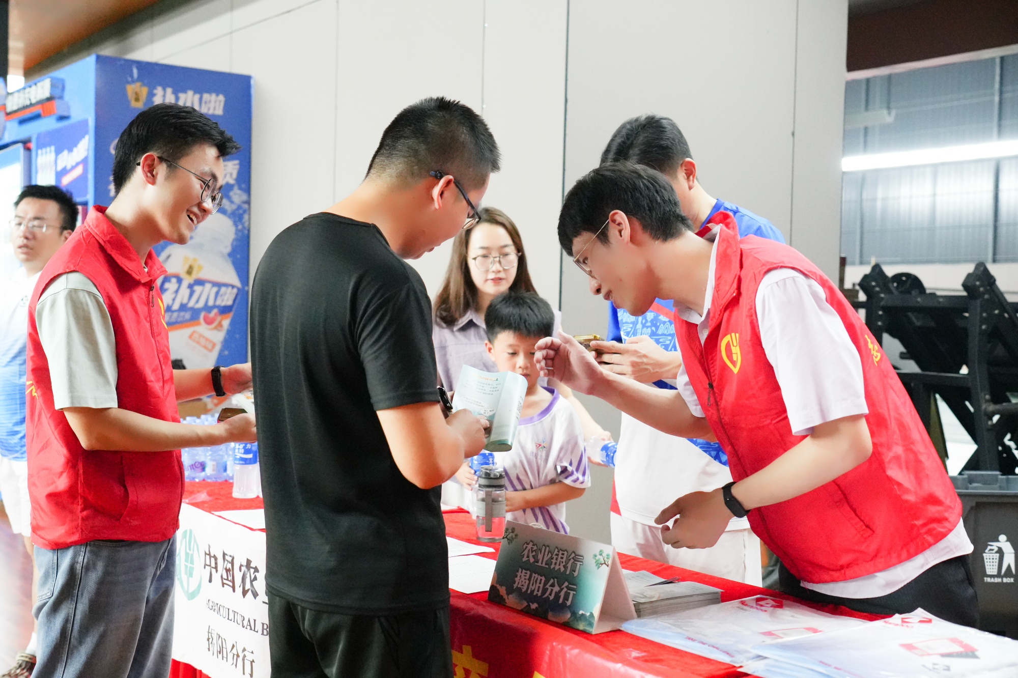 为迎接“十五运”,农行揭阳分行将金融知识宣传搬进运动馆,将金融知识普及融入群众文体生活