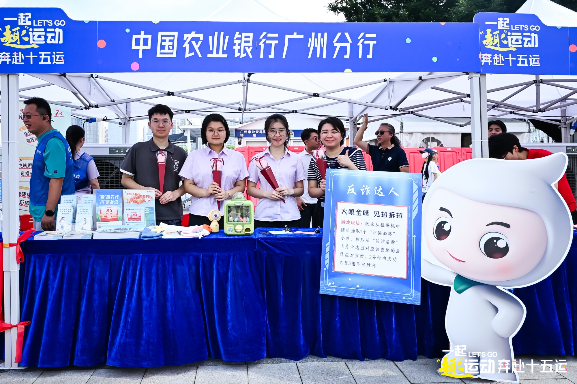 农行广州分行协办“一起‘趣’运动 奔赴十五运”——“全民迎全运”主题宣传启动仪式暨健步行海珠区专场活动,在现场开展沉浸式消保反诈宣传